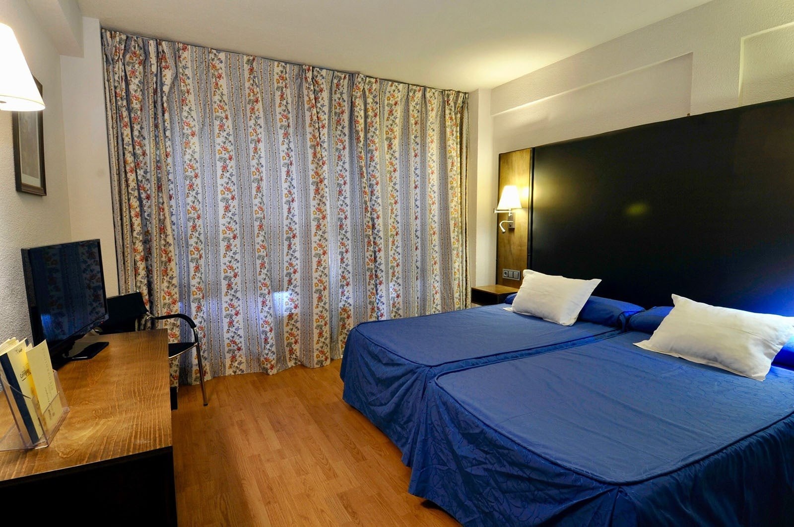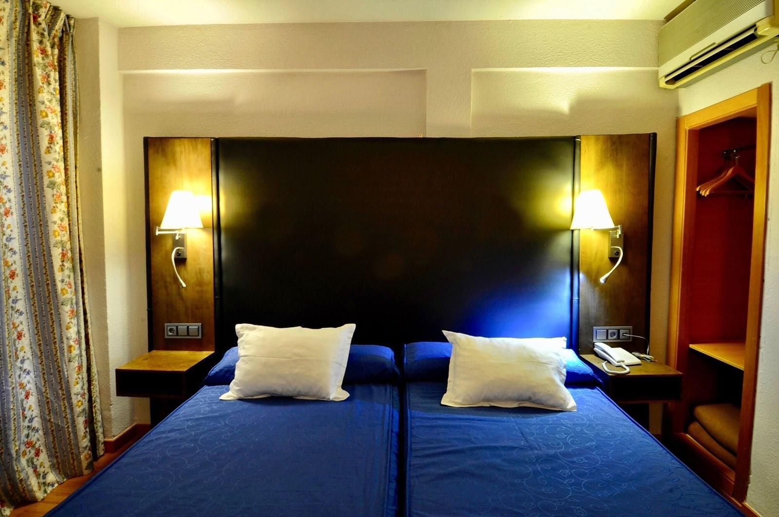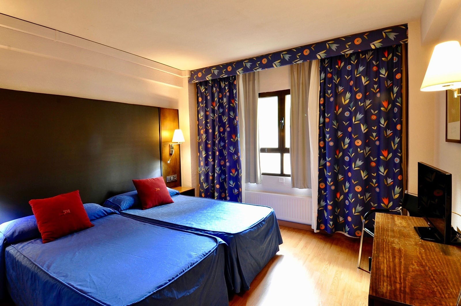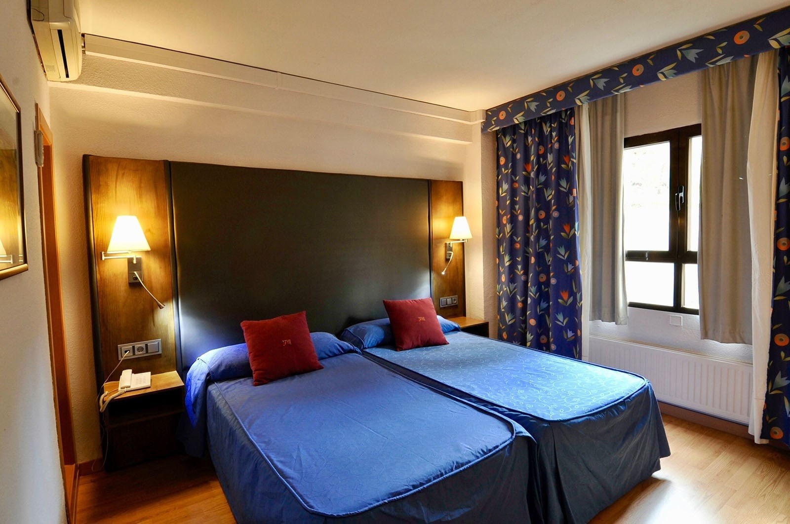 Incluye entre sus facilidades, dos camas de 1,05 x 2 m. de largo, o una cama grande de 1,50/1,80 de ancho y 2 m. de largo, ambas con colchón Advance Flex, y pone a tu disposición los siguientes servicios: aire acondicionado, baño completo, teléfono directo, televisión, minibar, WIFI, cuna (bajo petición) y secador de pelo.