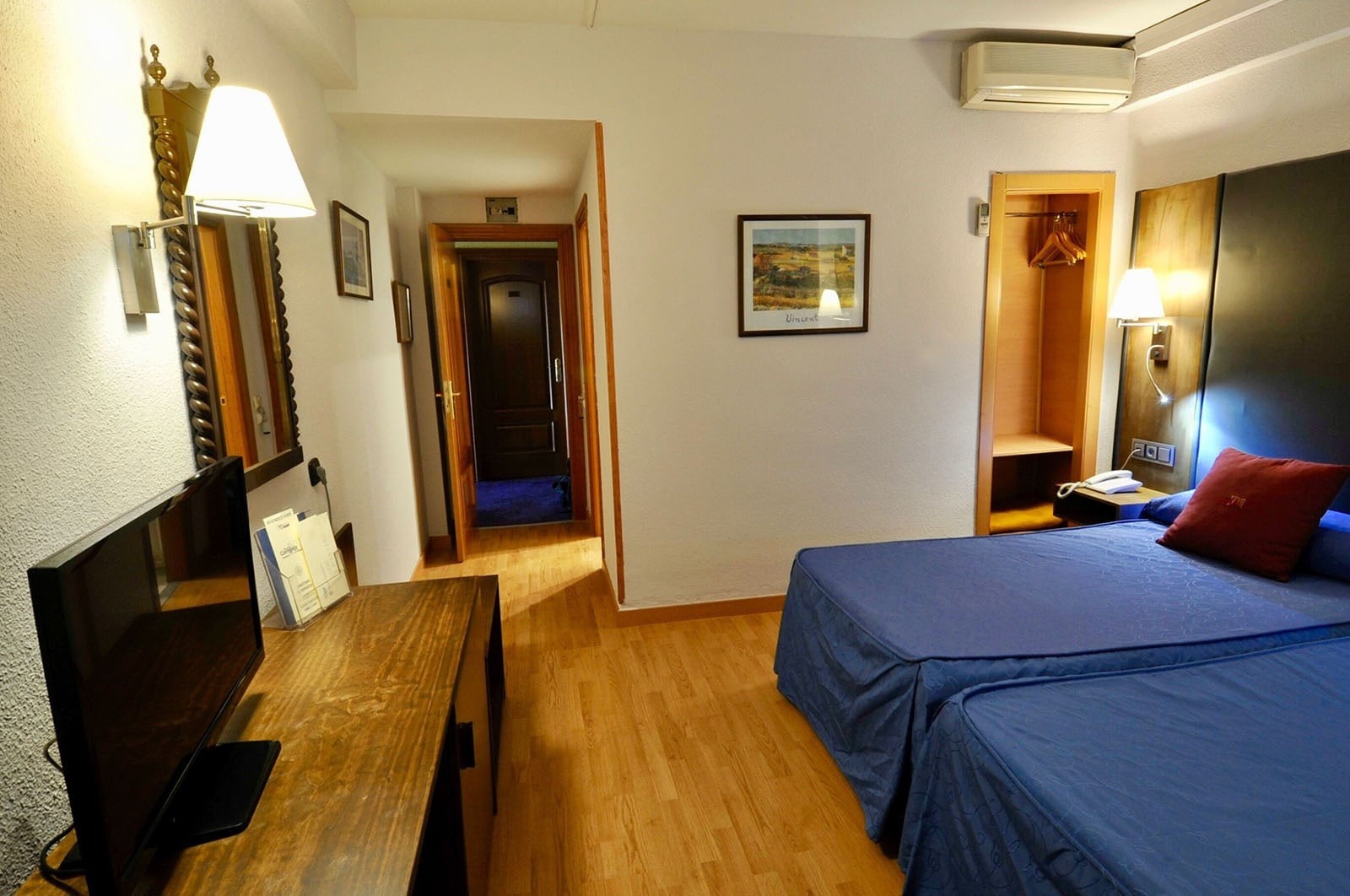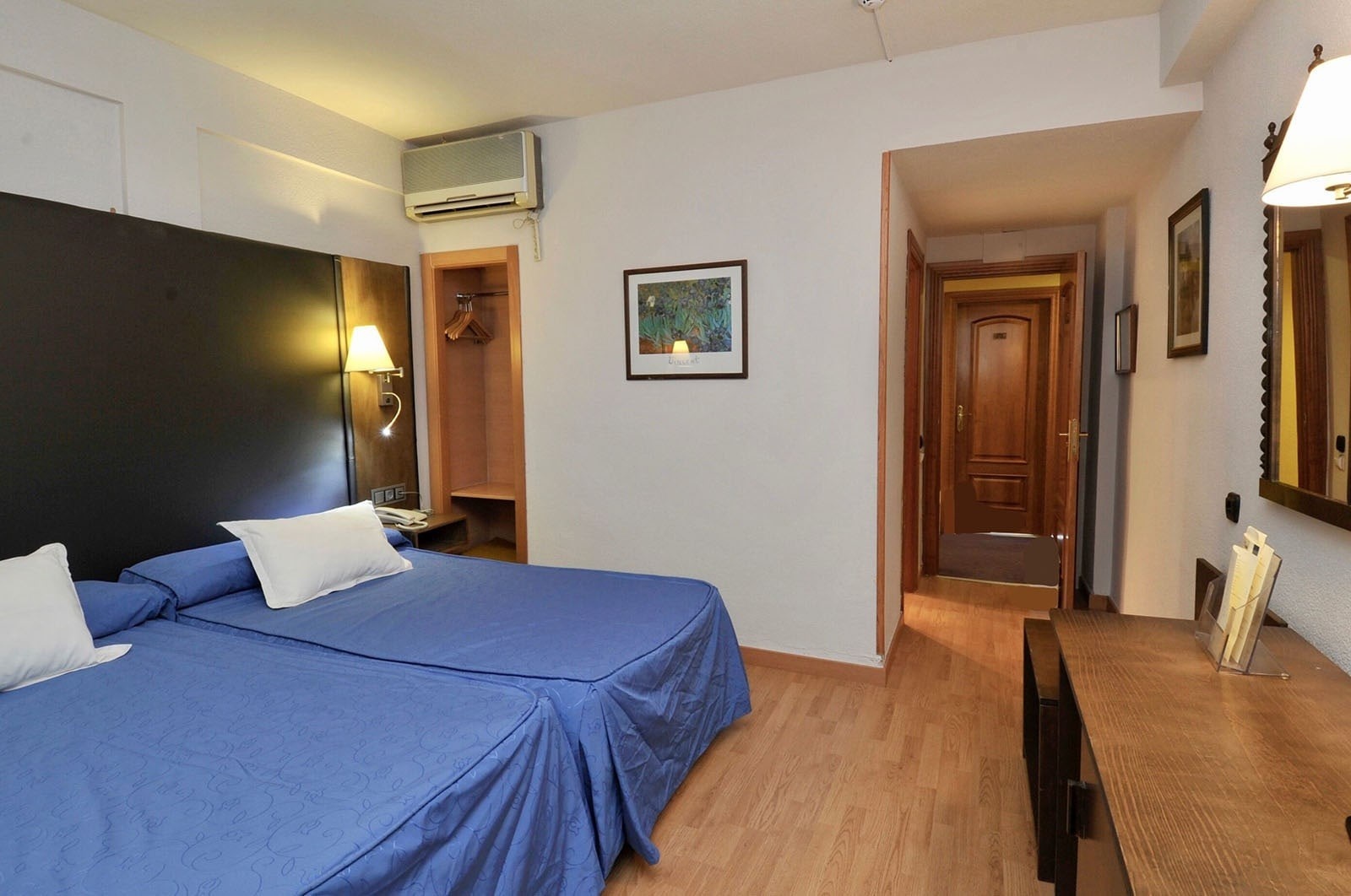 Incluye entre sus facilidades, dos camas de 1,05 x 2 m. de largo, una cama de 0.90 X 1.90 m de largo, y pone a tu disposición los siguientes servicios: aire acondicionado frio / calor, baño completo, teléfono directo, televisión, minibar, WIFI gratuito y secador de pelo.